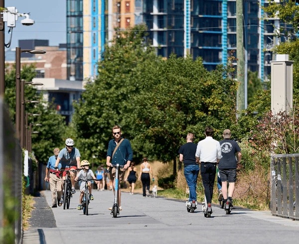 ATLANTA, GEORGIA – OCTOBER 07, 2022: Active people riding bikes, walking and jogging on the Atlanta BeltLine near Ponce Market.
