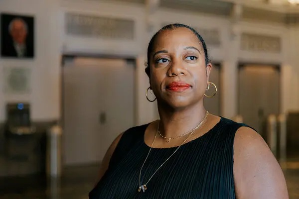 Gina Duncan is stepping down as the president of the Brooklyn Academy of Music, which said she will leave when her term expires in June.Credit…Jeenah Moon for The New York Times