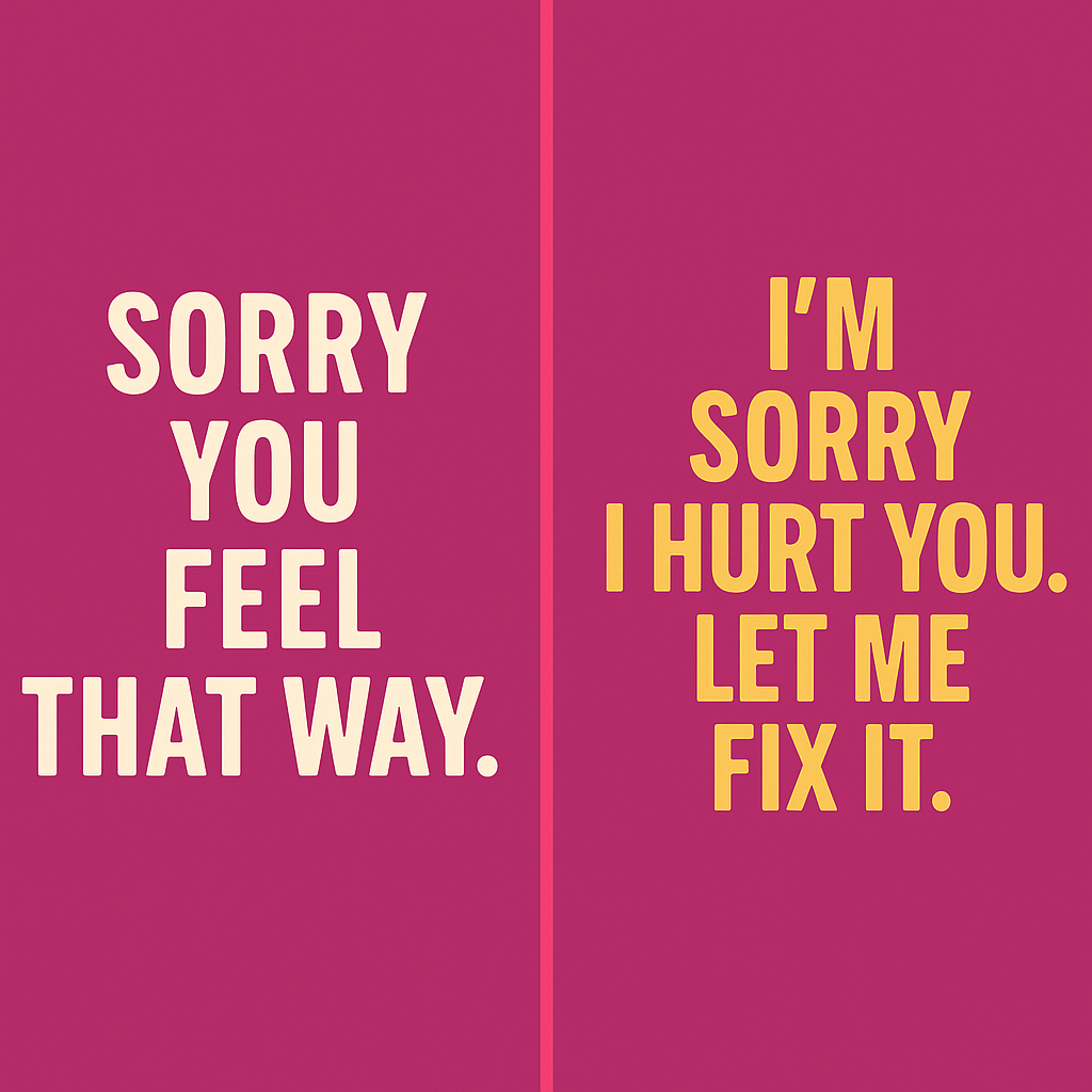 These are performative. They’re about escaping discomfort, not repairing harm. And they leave the other person holding emotional baggage you dropped on them and never picked back up.